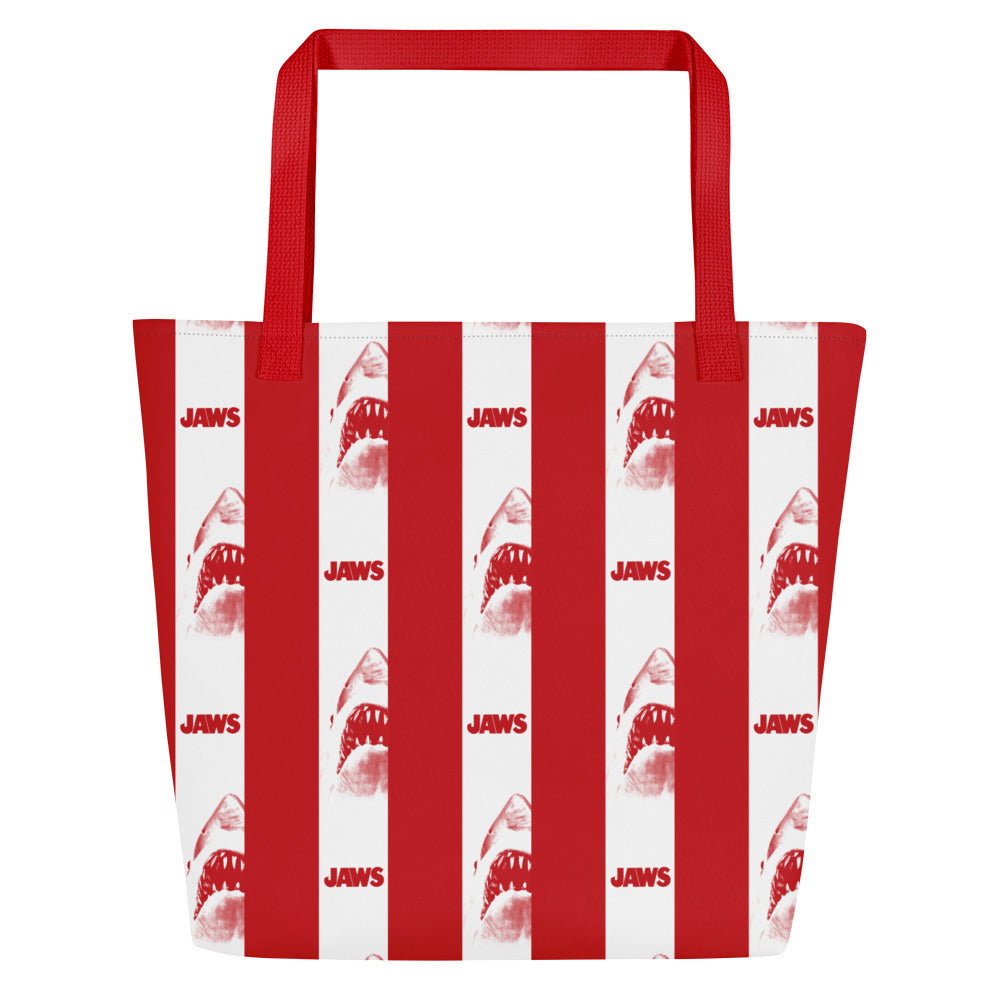 Celebrate 50 years of terror at sea with the Jaws 50th Anniversary Beach Bag. Featuring a vibrant, two-sided design of Jaws, this spacious bag includes an inside pocket for essentials. It's a bold tribute to the legendary thriller, perfect for beach days or everyday adventures!