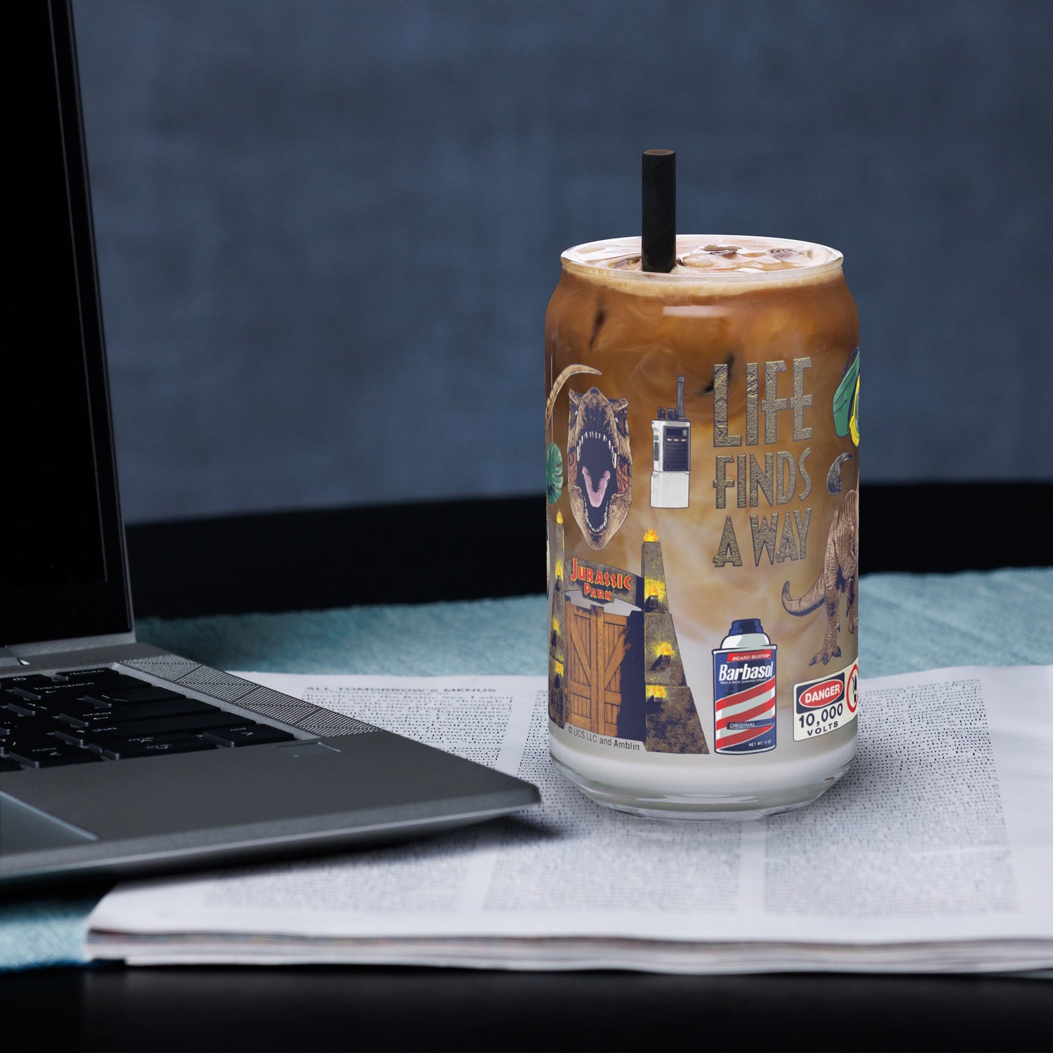 Jurassic Park Icon Collage Can-Shaped Glass