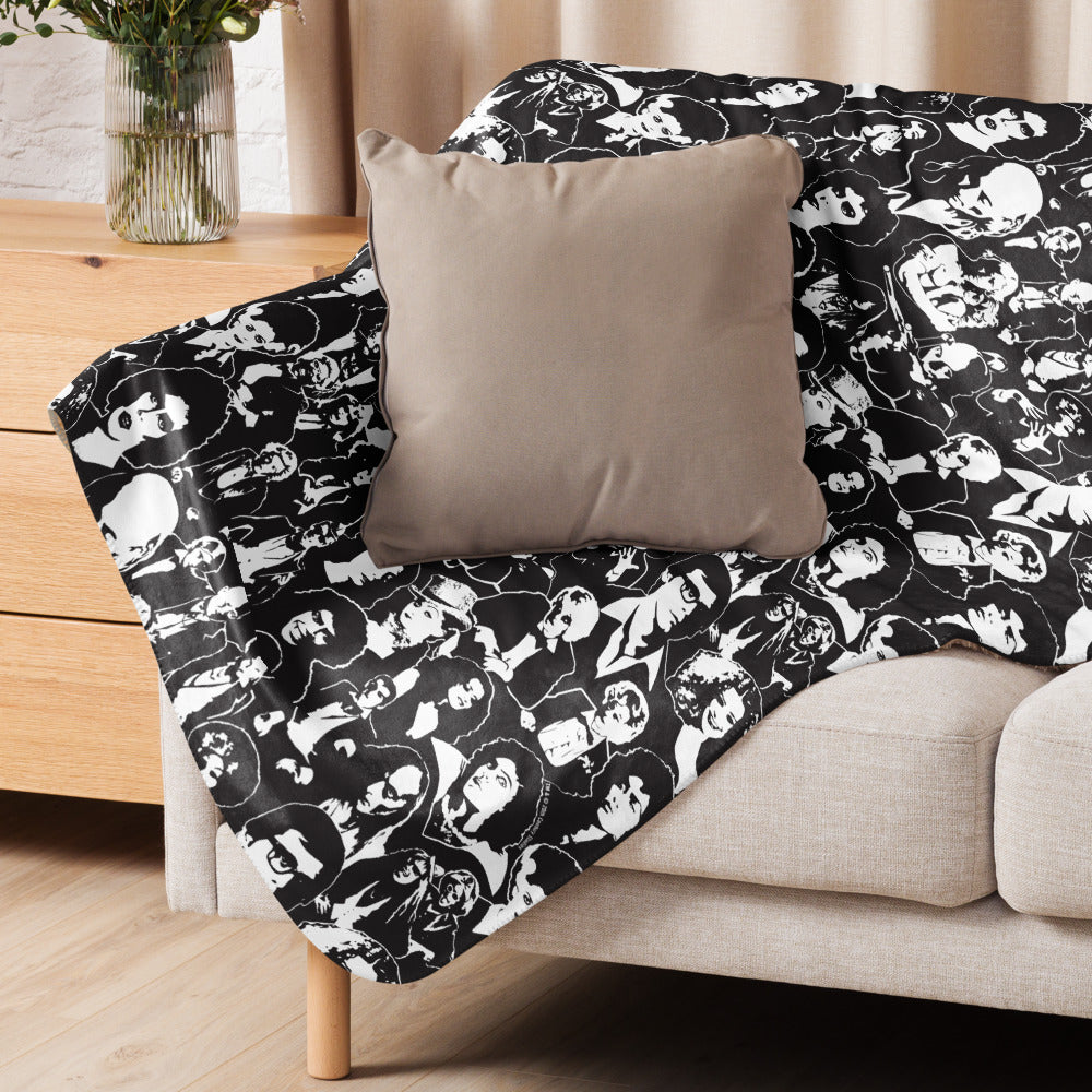 Celebrate your favorite cult classic in comfort with the Rocky Horror Picture Show Character Blanket. Featuring bold artwork of iconic characters like Dr. Frank-N-Furter, Magenta, Riff Raff, Columbia, a must-have for every Rocky Horror fan. Perfect for movie marathons, late-night viewings, or simply lounging in theatrical style, this blanket brings the bold energy and glam of the Time Warp right into your living room.
