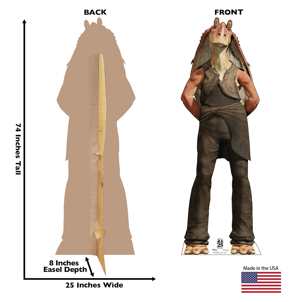 Bring the iconic Jar Jar Binks™ to life with the Star Wars The Phantom Menace 25th Anniversary Standee, a must-have for Star Wars fans! Standing tall at 74" x 25", this standee features Jar Jar Binks, rendered in stunning detail. Whether displayed in your home theater, office, or at your next Star Wars-themed event, this standee is sure to capture the hearts of fans and add a touch of nostalgia to your space!
