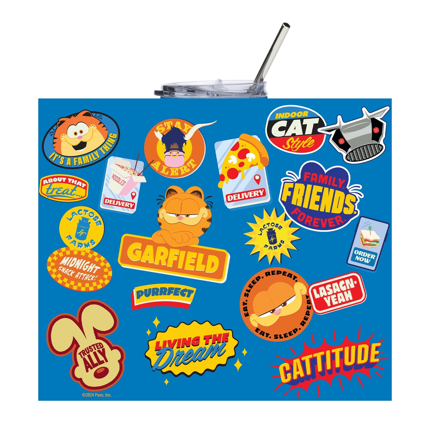 Quench your thirst in style with The Garfield Movie Sticker Icons Water Bottle. Featuring adorable sticker icons inspired by the beloved Garfield movie, this bottle adds a touch of whimsy to your hydration routine. Stay refreshed on-the-go while showcasing your love for classic cinema and everyone's favorite lasagna-loving cat.